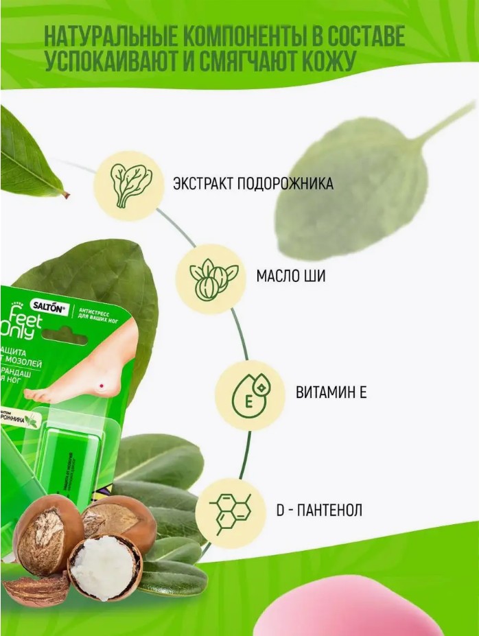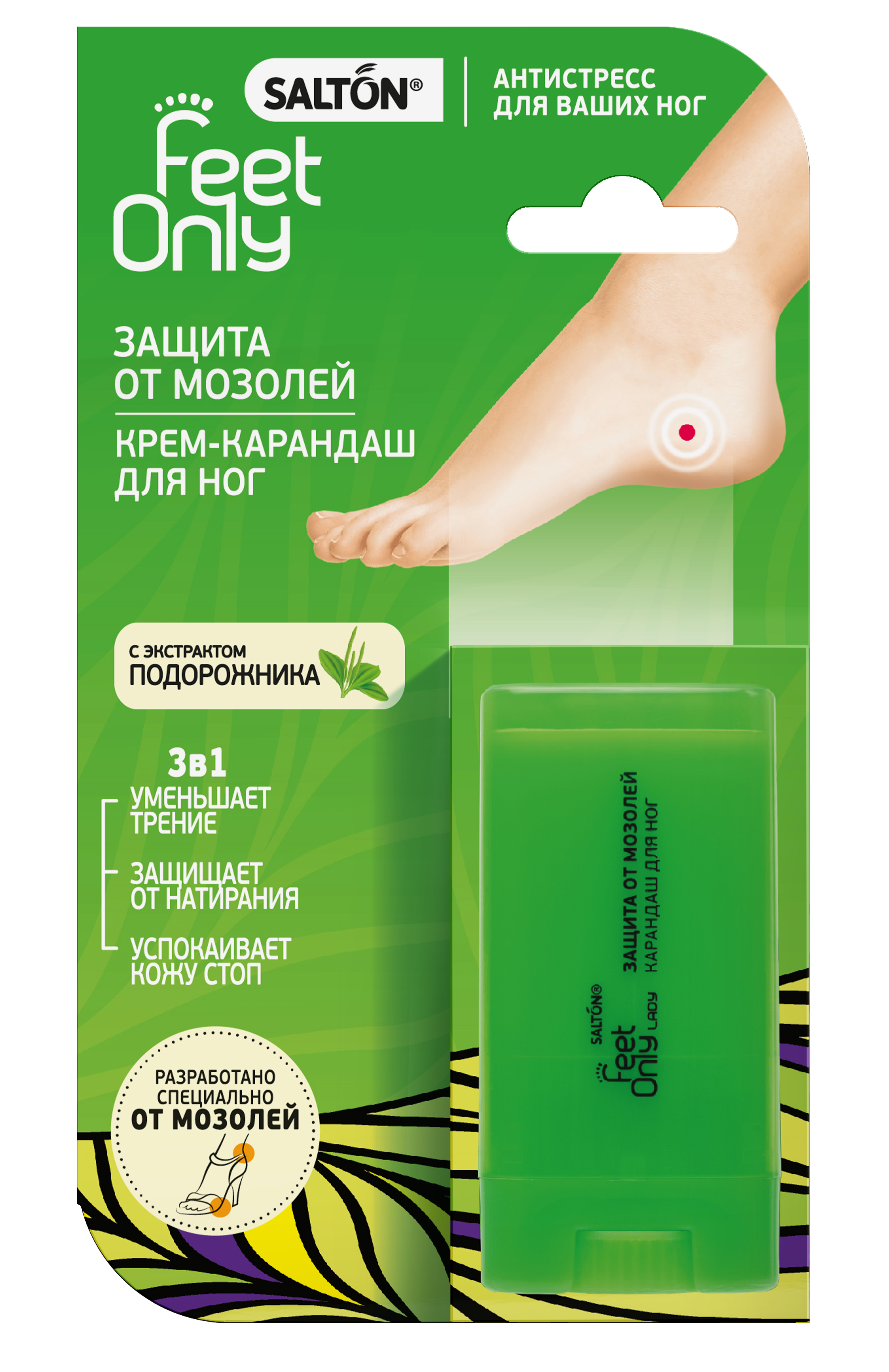 Карандаш от мозолей и натоптышей на пятках Salton Feet Only был разработан специально для женщин. Карандаш для ног Salton Feet Only поможет Вам навсегда забыть о мозолях от обуви на пятках и носить любую обувь с комфортом.