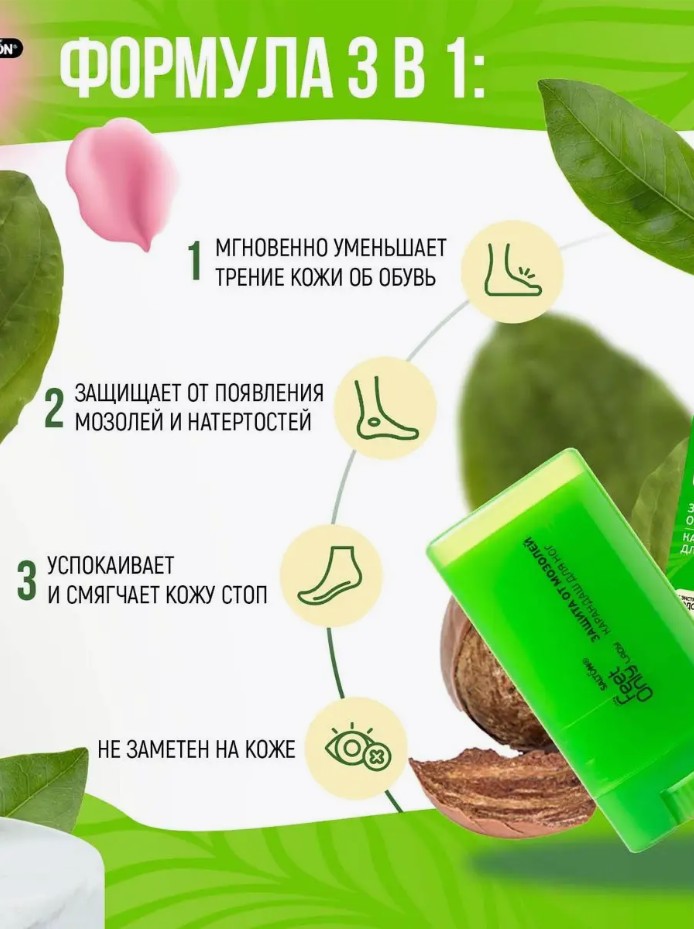 • Профилактика мозолей и натоптышей. Чтобы на ступнях не образовывались трещины и мозоли, важно не только выбирать удобную обувь, но и регулярно использовать специальные средства. Например, стик “Защита от мозолей 3в1” создает невидимый защитный барьер и предотвращает появление мозолей при ношении обуви.