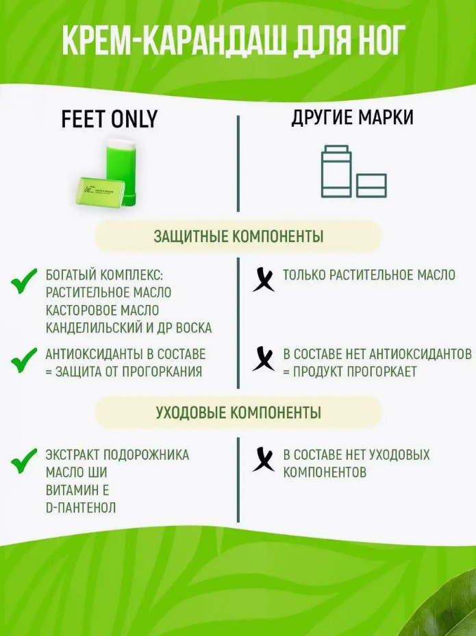 Этот карандаш моё спасение в летний период. Имею очень нежные стопы (натирают даже тапочки). Пробывала другой ТМ не помогает, а этот отлично. Но надо всё равно обновлять, целый день проходить не возможно даже с ним. Адекватная цена. Спасибо. Рекомендую.»